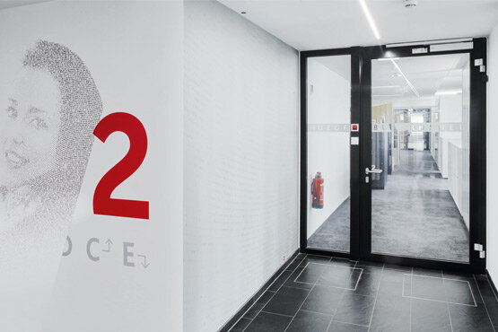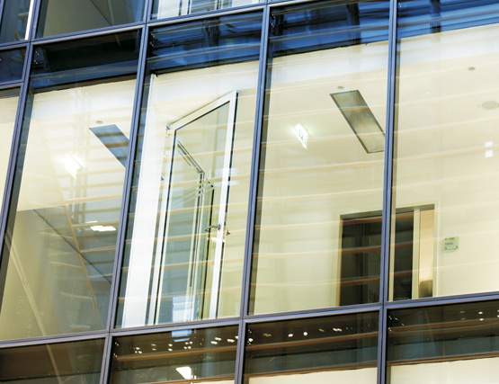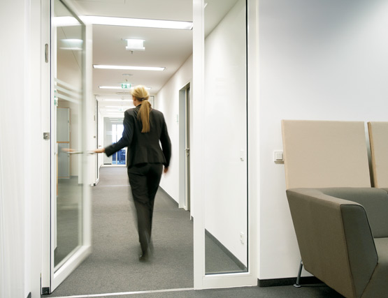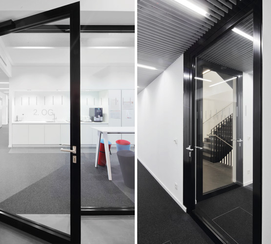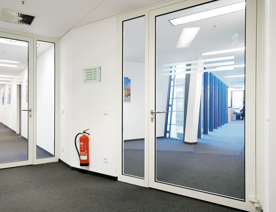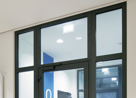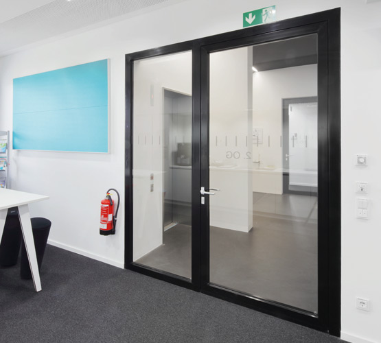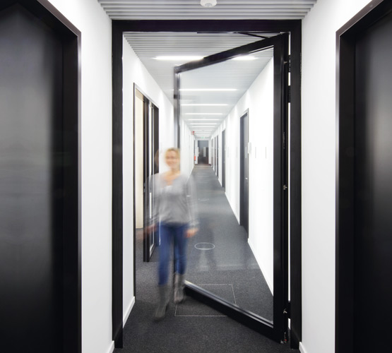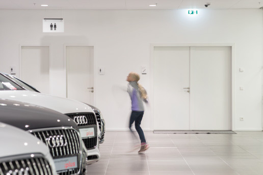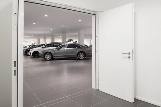 Robust und solide ausgestattet, eignen sich diese Stahltüren nicht nur für den Einsatz im harten Werkstattalltag, sondern – wie hier bei Audi – mit ihrer wohnlichen Dickfalz und attraktiven Oberflächendesigns gleichermaßen auch im Büro- und Verwaltungsbereich. Vielfältige Verglasungsarten oder Sonderausführungen mit spezifischen Lackierungen oder Folierungen ermöglichen dabei selbst individuelle Türdesigns.