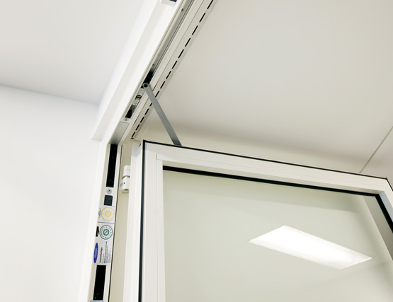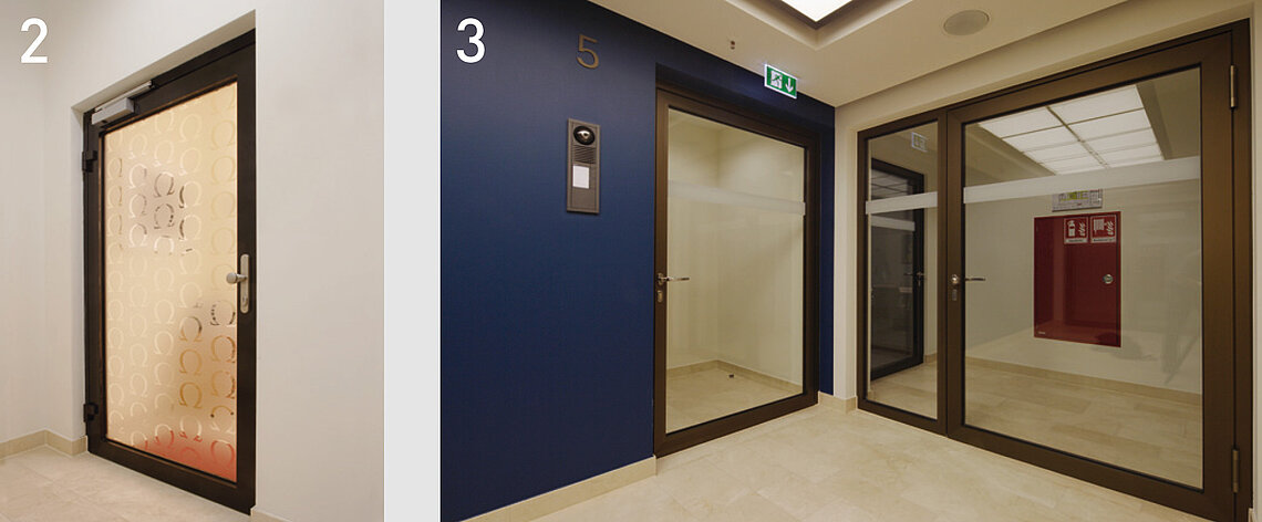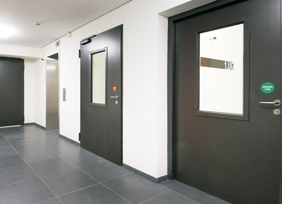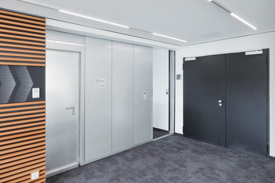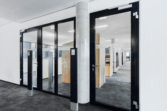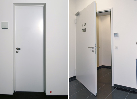Im neuen Audi Terminal kamen ein und zweiflügelige Novoferm-Feuerschutztüren, T30 und T90, mit der vorgeschriebenen Selbstschließung zum Einsatz. In besonders hoch frequentierten Bereichen wurden zudem Sonderlösungen mit elektromechanischer Feststellung installiert. Vernetzt mit der Rauchmeldeanlage schließen diese Türen im Gefahrenfall automatisch. Im Alltag aber bleiben sie bequem geöffnet und sichern so den schnellen, ungehemmten Arbeitsgang. In anderen Bereichen, wie beispielsweise den Treppenhäusern, wurden überdies Feuerschutztüren mit zusätzlicher Rauchschutzfunktion eingebaut, die für eine sichere Abschottung der Zubringer im Brandfall sorgen.