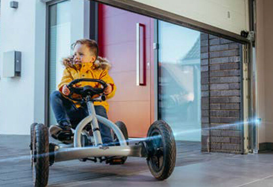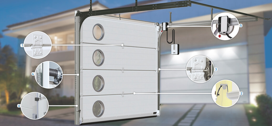 Den speciella konstruktionen av sektionerna och gångjärnen utesluter klämskador från portbladet redan från början. Med Novoferm är du säker från klämskador även på insidan.