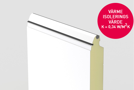 Våra stålsektioner tillverkas uteslutande i en dubbelsidig sandwich-konstruktion och fylls med en värmeisolerande kärna av polyuretanskum. Med en tjocklek på ≈67 mm (värmeisoleringsvärdet K = 0,34 W/m2K) har den särskilt goda värme- och ljudisoleringsegenskaper.