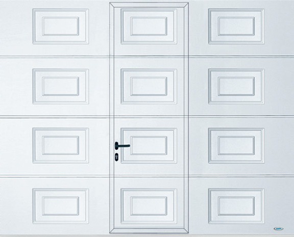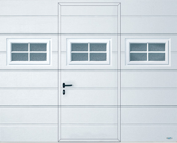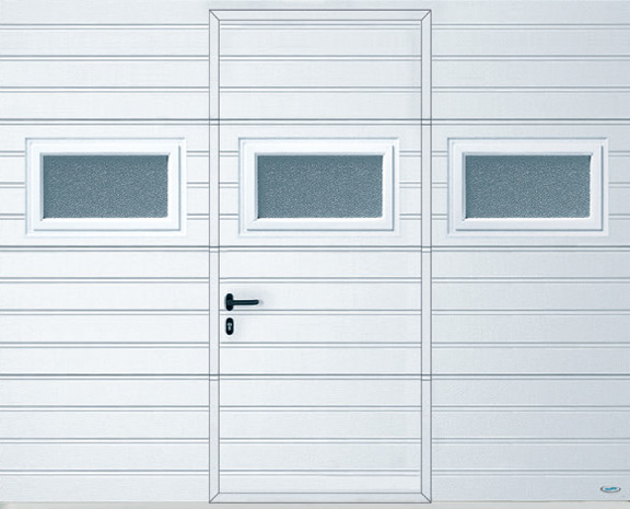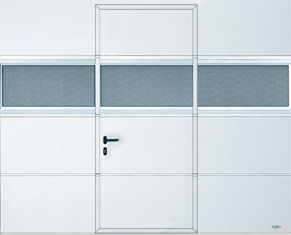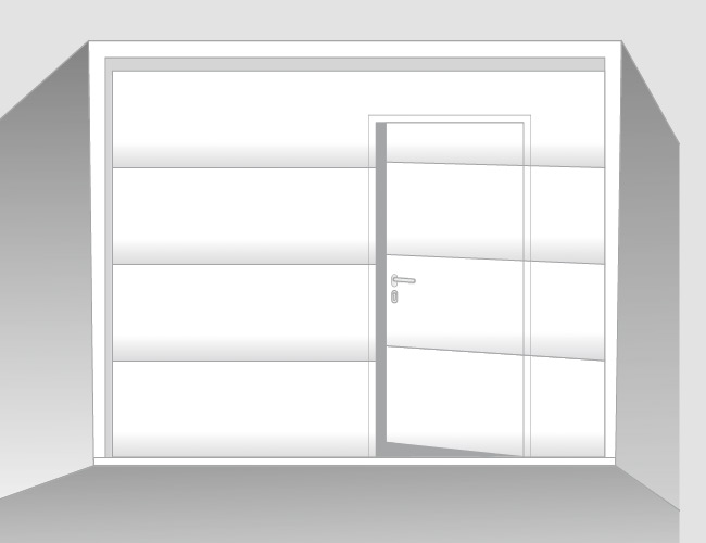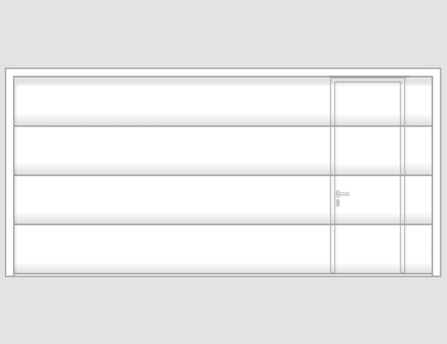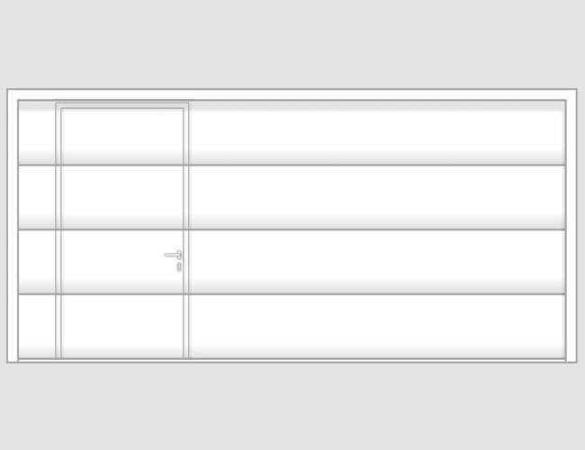 Jede Sektion der Schlupftür wird dabei über eine eigene Schlosseinrichtung verriegelt und kann bequem von innen und außen über das Profilzylinder-Schloss zentral betätigt werden.
