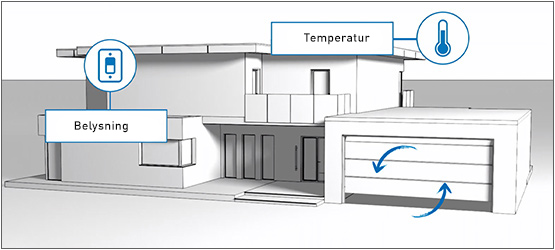 Då är det enkelt att integrera din smarta garageport. Men det är inget tvång. Du kan förstås styra din takskjutport från Novoferm även utan ett SmartHome-system och appar.