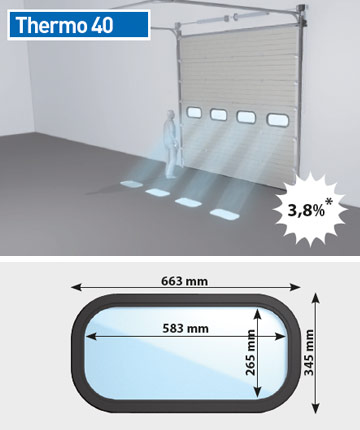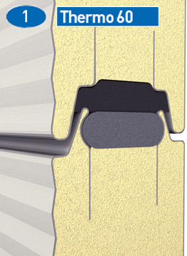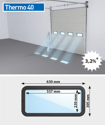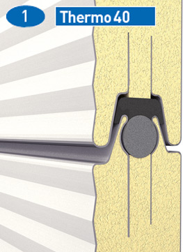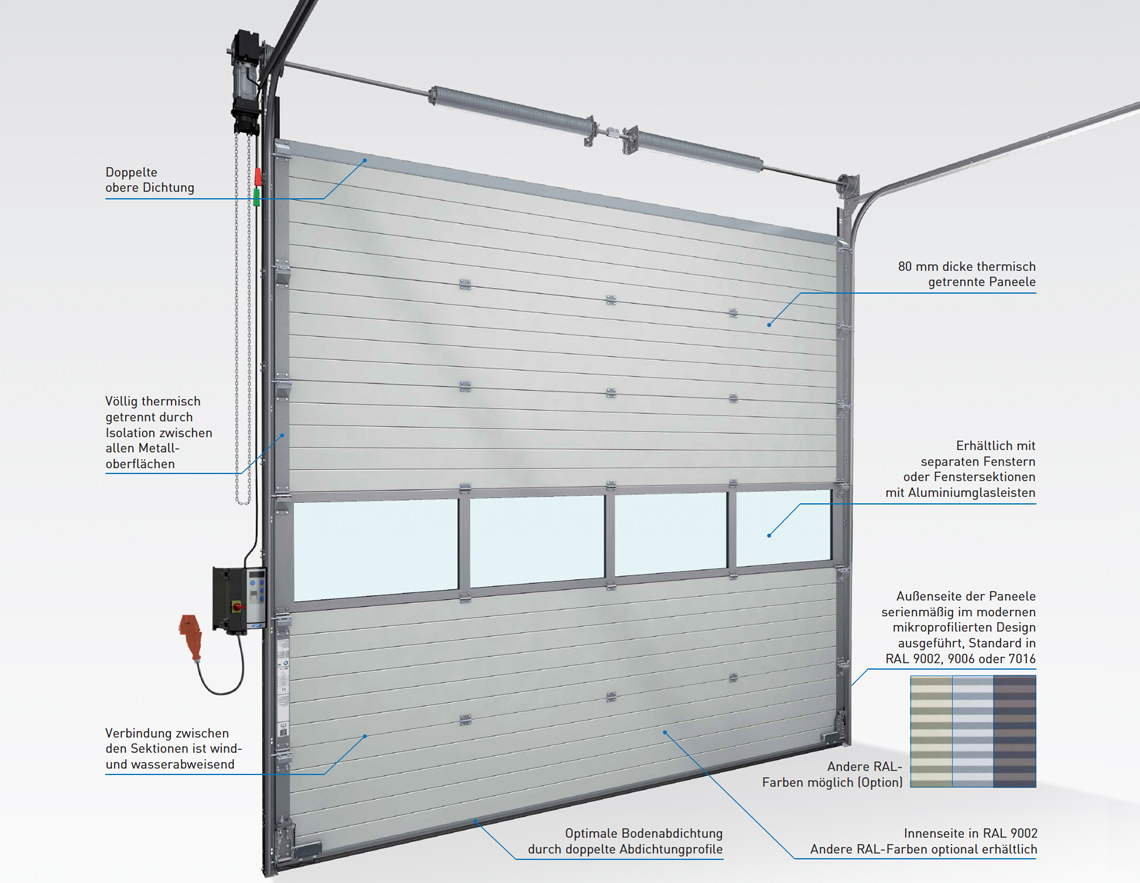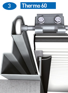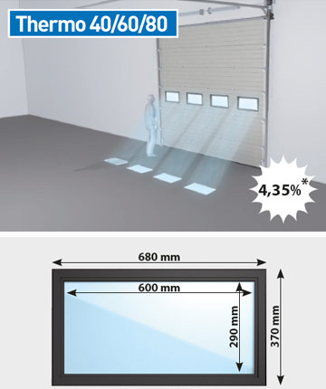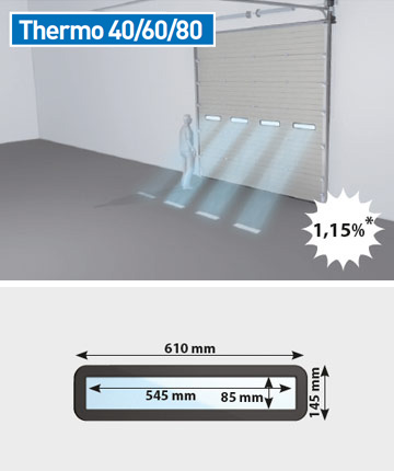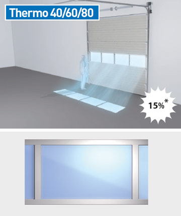 Thermo 80 består av horisontella paneler som rör sig lodrätt rakt upp eller in under taket när den öppnas. Fogarna mellan panelerna har tätning av plast vilket gör dem vind- och vattentäta.