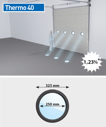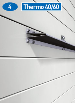 Portens vikt balanseras med hjälp av torsionsfjädrar, vilket gör det möjligt att öppna och stänga porten för hand. Thermo 80 mm kan levereras med T450, T400, T500-skensystem och med HF-versioner.