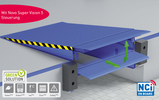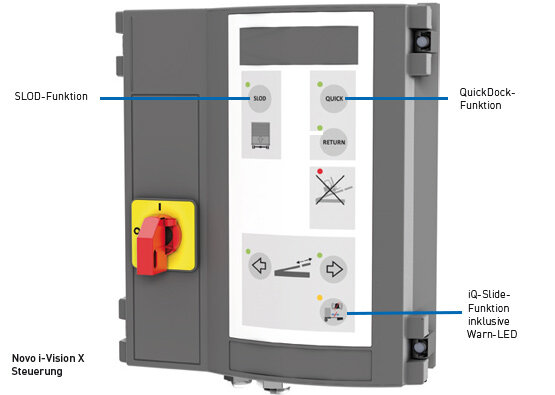 iQ-Slide – detta intelligenta läppsystem följer lastbilen. iQ-Slide är en patenterad lösning som sköter rörelsen för lastbryggans läpp automatiskt och följer lastbilen. Detta förhindrar att lastbryggans läpp halkar bort från lastbilen. Om läppen är utskjuten till sin maxlängd, och den inte längre kan följa lastbilen, så ljuder en varningssignal. Dessutom visar en LED-lampa på styrenheten att funktionen inte längre är aktiv.