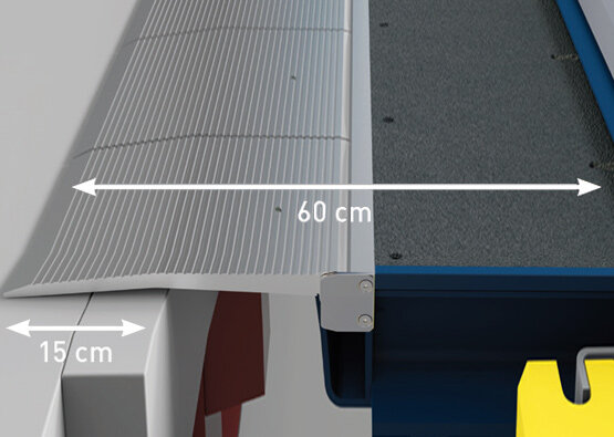 Alu-Slide – Mjuk övergång mellan lastbil och lastbrygga. Segmenten är gjorda av extra fast aluminium vilket innebär att övergången från teleskopläppen till lastbilen är säker. Detta är extra skonsamt mot transportgods och gaffeltruck, inte minst för gaffeltruckföraren, som får en mer ergonomisk arbetsmiljö och lägre belastning på sin rygg. Dessutom är bullernivån betydligt lägre. Aluminiumsegmenten ger en större avlastningsyta vilket ökar säkerheten och reducerar risken att bryggan ska halka bort från lastbilen..