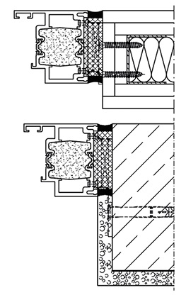 Ytanslutningar jäms med dörren, alternativt fristående, valfritt fasade eller T-anslutningar. Karmstiften måste passera hela brandskyddsfönstrets höjd utan att vara inskjutna.