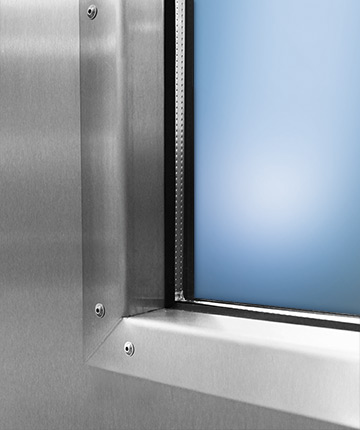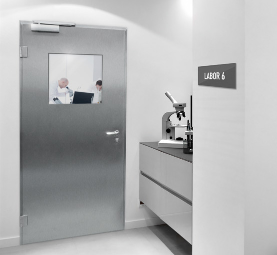 Das Besondere an dieser Tür ist aber nicht nur ihre sorgfältige Verarbeitung in eigens dafür eingerichteten Produktionshallen. Bei aller Widerstandsfähigkeit und Unempfindlichkeit, auch gegenüber säurehaltigen oder alkalischen Reinigungsmitteln, ist sie dennoch eine wahre Schönheit. Mit ihrem attraktiven Oberflächenfinish in geschliffen oder kreismattiert wird sie in jedem Betriebsraum zum Blickfang. Dazu kommt dann noch eine Ausstattung, die von der Verglasung bis zum Magnetkontakt, kaum Wünsche offen lässt.
