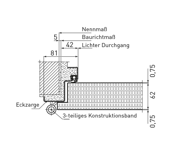 Ein wesentlicher Vorteil sind die zugelassenen Zargenhinterfüllungen mit Novoferm Brandschutzschaum und loser Mineralwolle*, mit denen zeitsparend nur der Falzbereich der Eckzarge hinterfüllt wird, während die Gegenzarge frei bleiben kann.