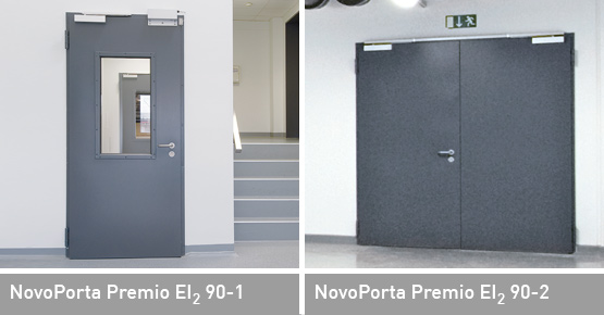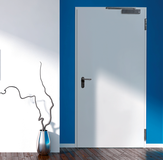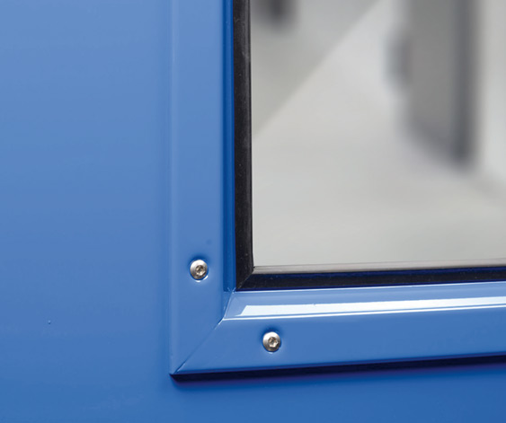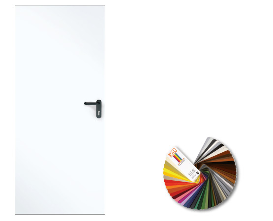 Türblatt und Zarge verzinkt und grundiert (pulverbeschichtet) ähnlich RAL 9016. Optional Türblatt und Zarge auch in RAL nach Wahl oder Novoferm Design-Oberfläche lieferbar.
