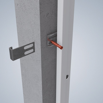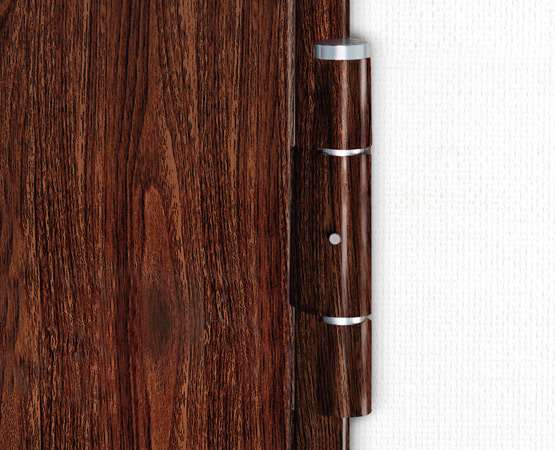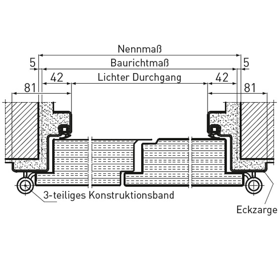 3-teilige Konstruktionsbänder mit Kugellagerringen serienmäßig. Je Flügel zwei Bänder im Standard weiß grundiert ähnlich RAL 9016; optional in Edelstahl, als 3-D verstellbare Bänder in Stahl und Edelstahl oder als schlankes 3-D-Edelstahl-Objektband (Obentürschließer erforderlich) lieferbar. Bei 1-flg. Türen bis BRM-Größe 1000 x 2125 mm ein Konstruktionsband und ein Federband. Ab BRM-Größe 1001 x 2126 und bei allen 2-flg. Türen je Flügel zwei Konstruktionsbänder. Zwei Sicherungszapfen je Türflügel. PZ-Wechselschloss mit schwarzer Rundgriff-Drückergarnitur festdrehbar gelagert. Profilzylinder bauseits (Länge 85 mm, 35/50 mm). 1-flg. Türen standardmäßig mit innenliegender Verstärkung für Obentürschließer auf Bandseite. Ab BRM-Größe 1001 x 2126 mm mit Obentürschließer Geze TS 4000 F oder Dorma TS 89 F.