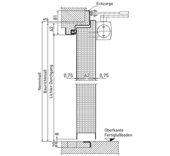 Ein wesentlicher Vorteil sind die zugelassenen Zargenhinterfüllungen mit Novoferm Brandschutzschaum und loser Mineralwolle*, mit denen zeitsparend nur der Falzbereich der Eckzarge hinterfüllt wird, während die Gegenzarge frei bleiben kann.