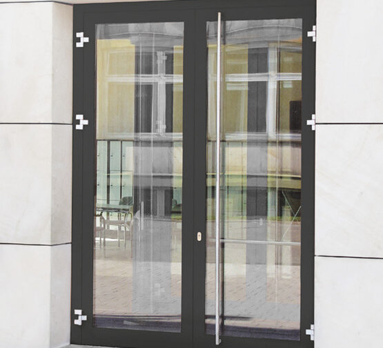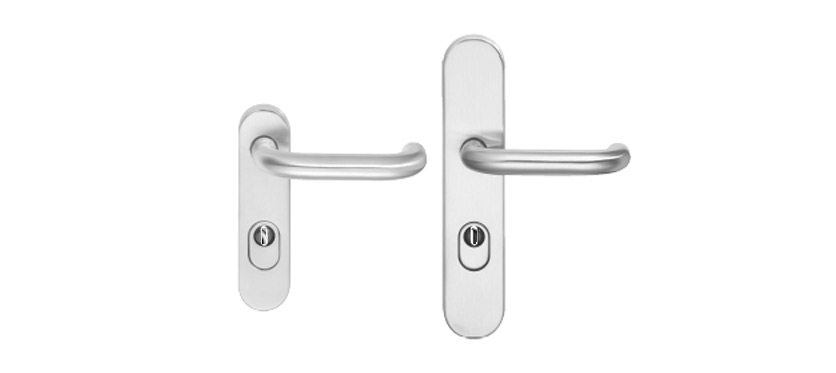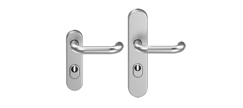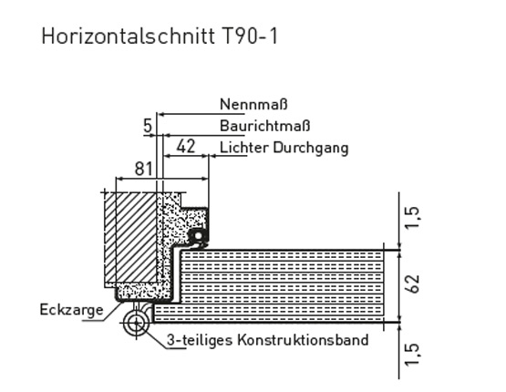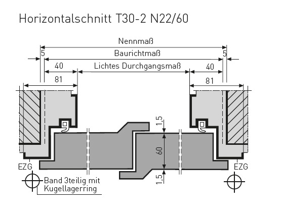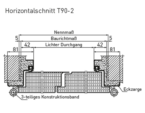 2 Bandkonstruktionen, dreidimensional verstellbar (3-D-Band im Standard), mit Bandsicherung, Leichtmetall-Wechselgarnitur nach DIN 18257 ES 1 ZA mit Kurzschild 72 mm sowie SI-Profilzylinder nach DIN 18252 BS (35 + 26mm), Sicherungsschein und drei Schlüssel.