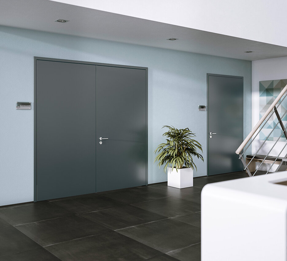 Zarge verzinkt und EC grundiert ähnlich RAL 7035, optional RAL nach Wahl.